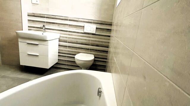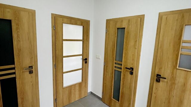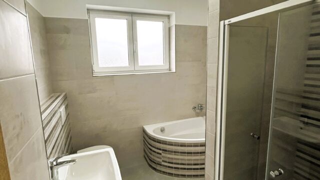 2.NP – ložnice 14,7 m2, pokoj 8,97 m2, pokoj 9,08 m2, koupelna + WC 6,37 m2 (vana i sprch. kout), chodba 8,6 m2,
