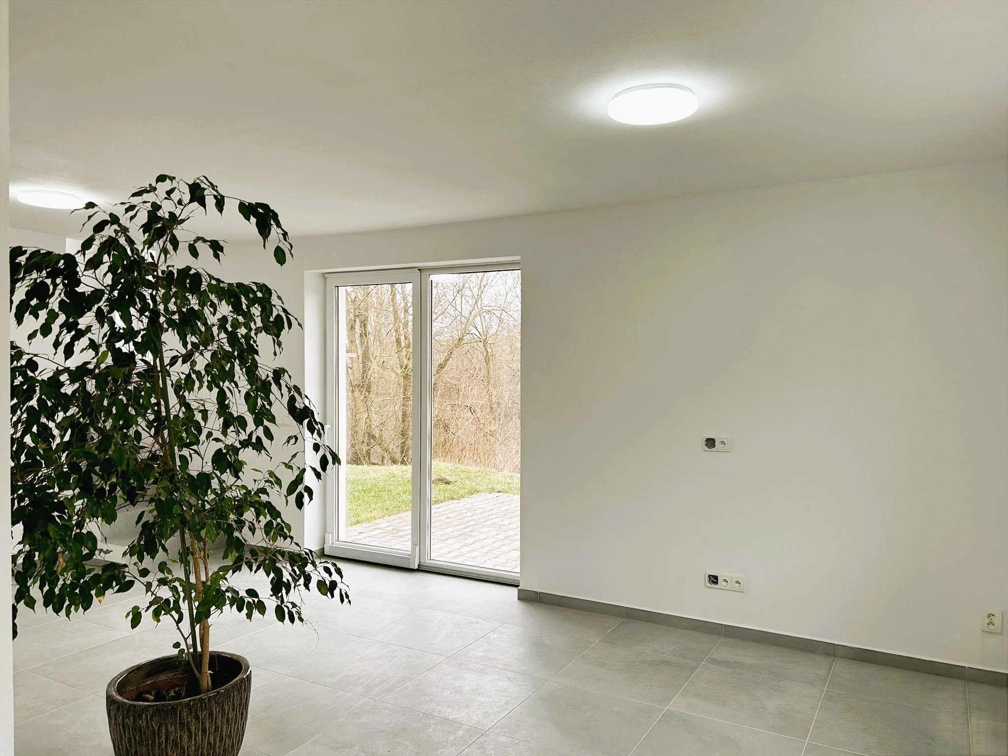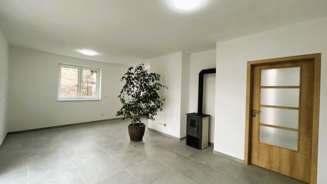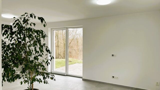 Z obývacího pokoje je přímý vstup na terasu a zahradu.