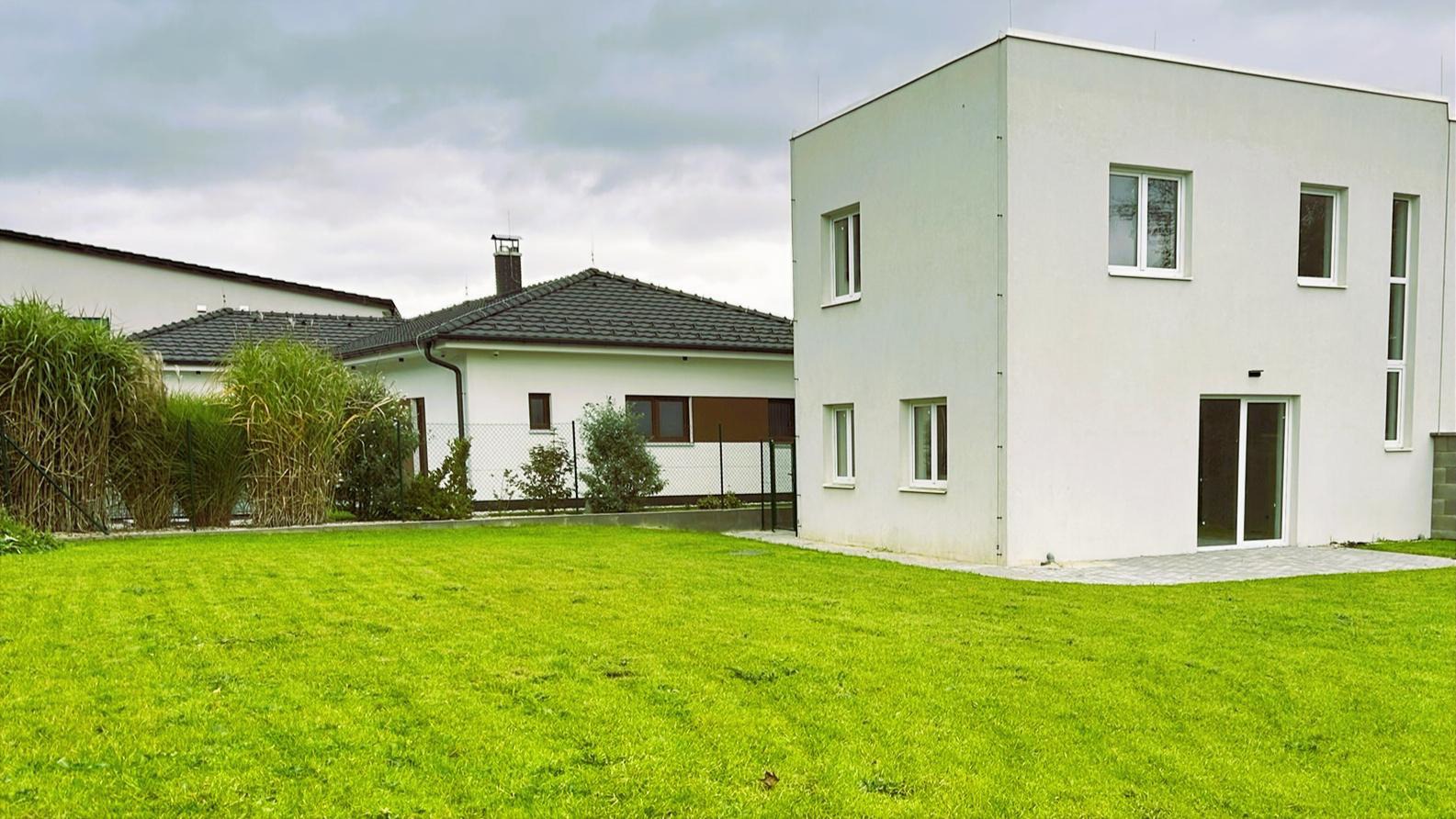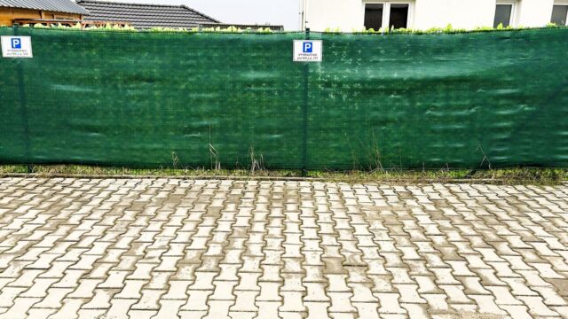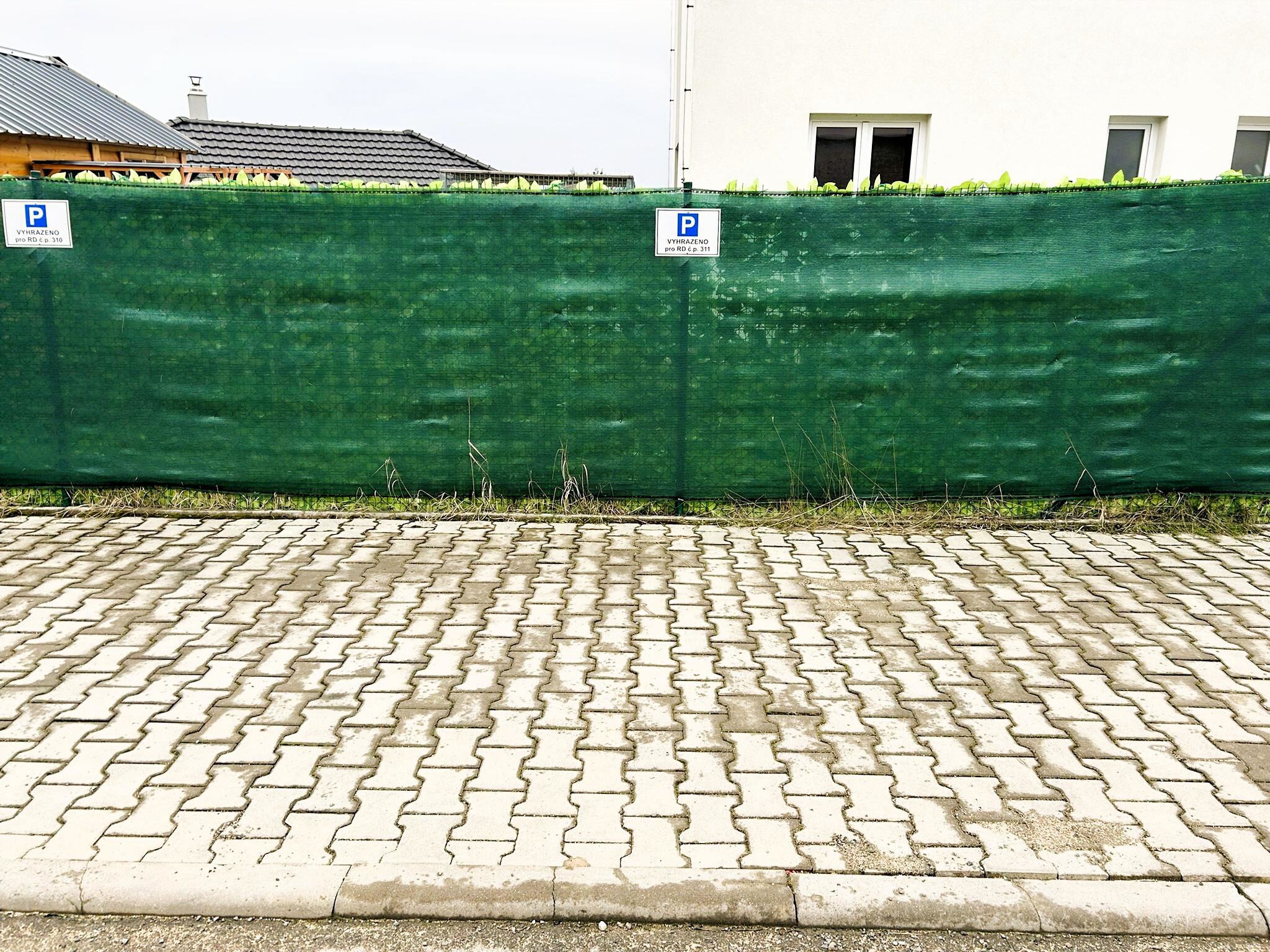 V ceně rodinného domu je zahrnuta také instalace oplocení z poplastovaného pletiva včetně zelené geotextilie, která zajišťuje maximální soukromí na zahradě.