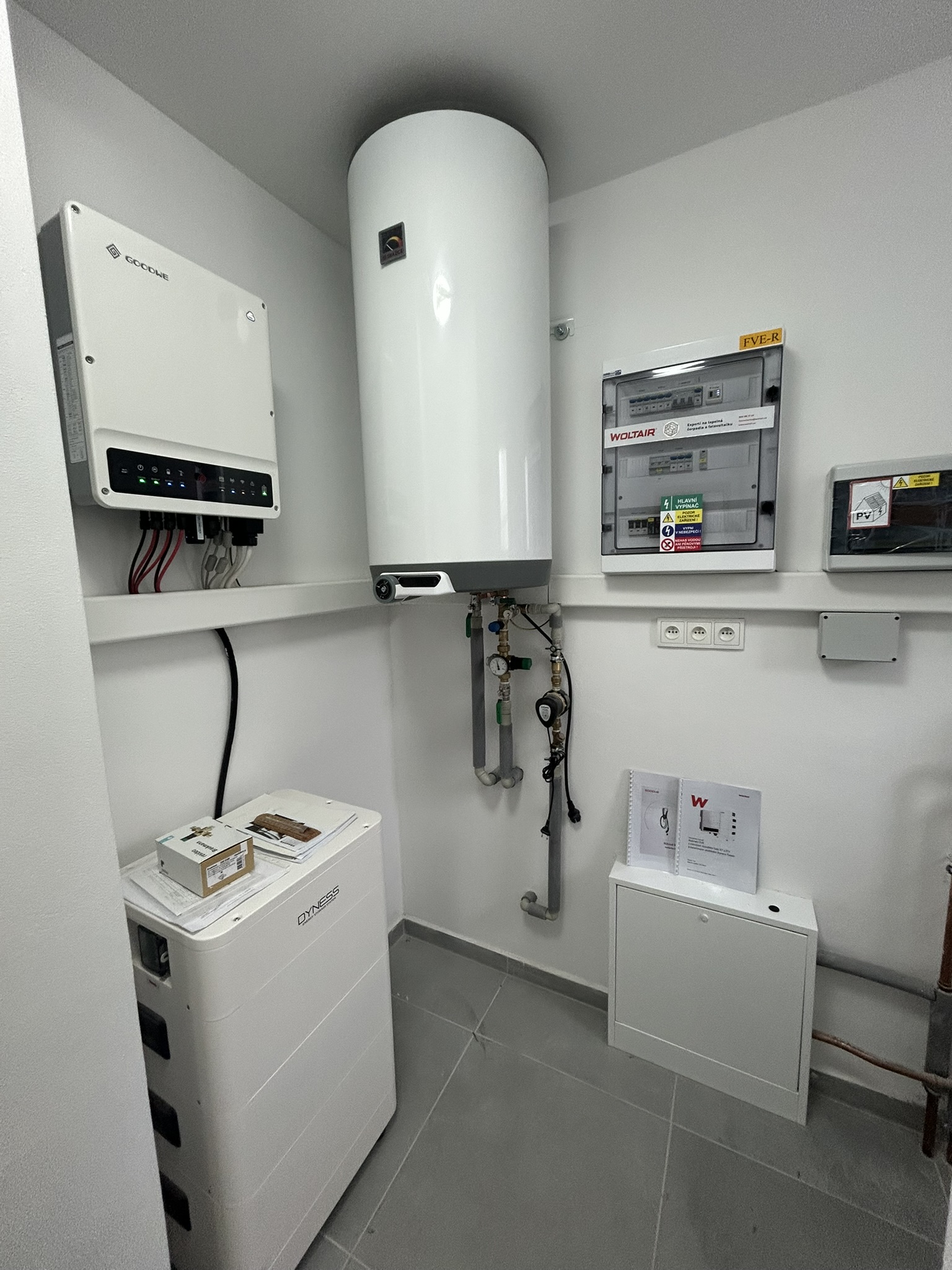 Dům je vybaven moderní hybridní fotovoltaickou elektrárnou o výkonu až 4,95 kWp s bateriovým úložištěm 10,65 kWh, která zajišťuje roční výrobu elektřiny až 6 MWh. Součástí systému je také wallbox pro nabíjení elektromobilu. Celková hodnota této technologie činí 350.000 Kč, což výrazně snižuje provozní náklady domu.