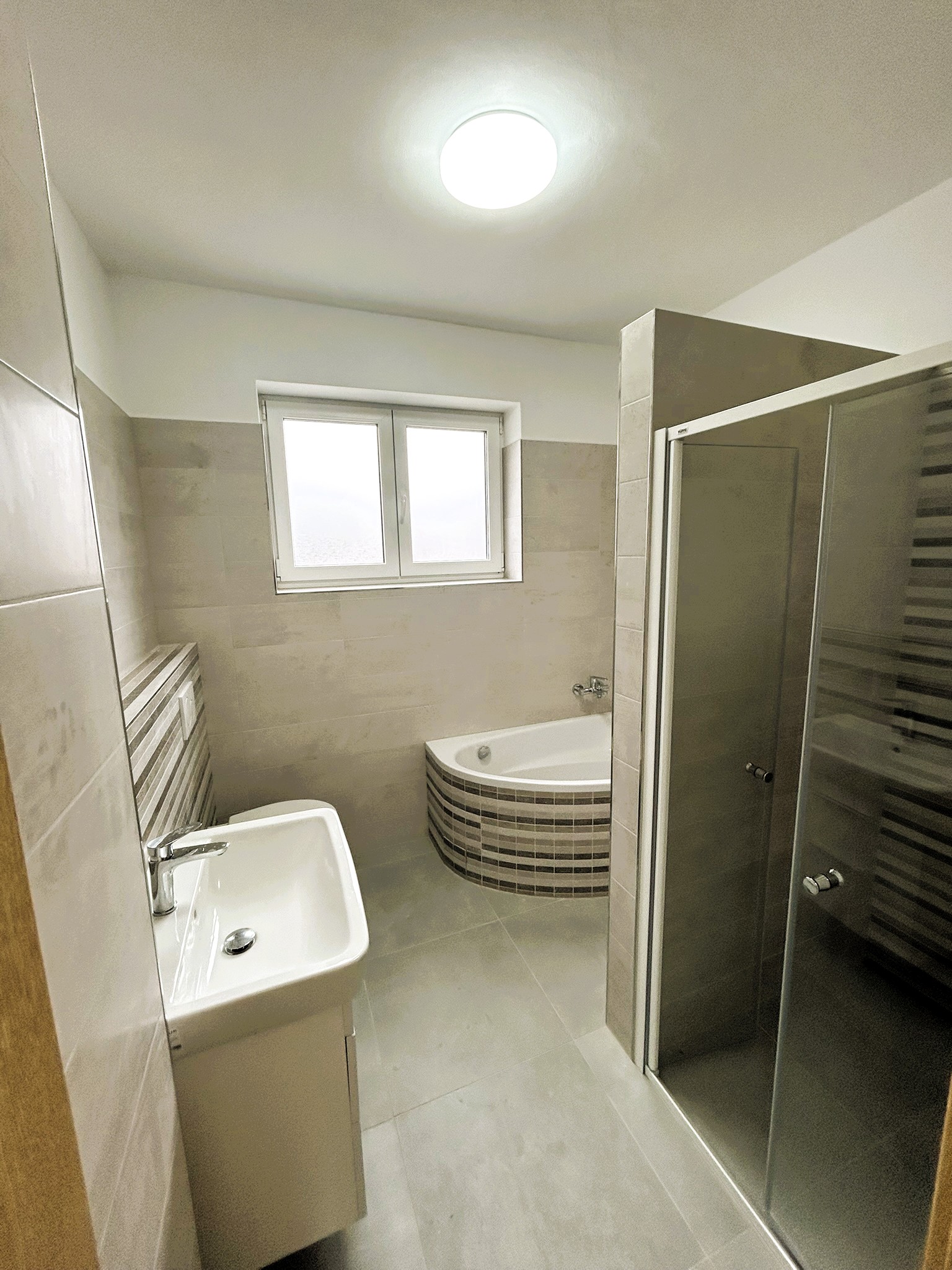 střecha: rovná betonová, zateplená spádovým polystyrenem